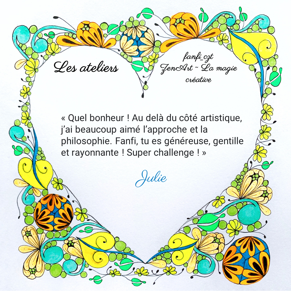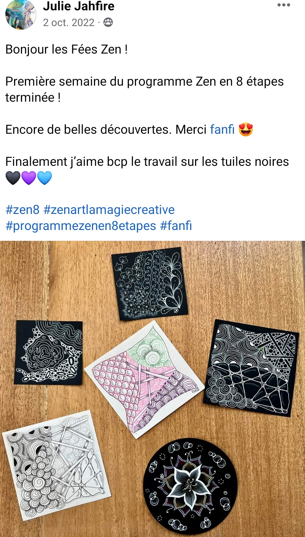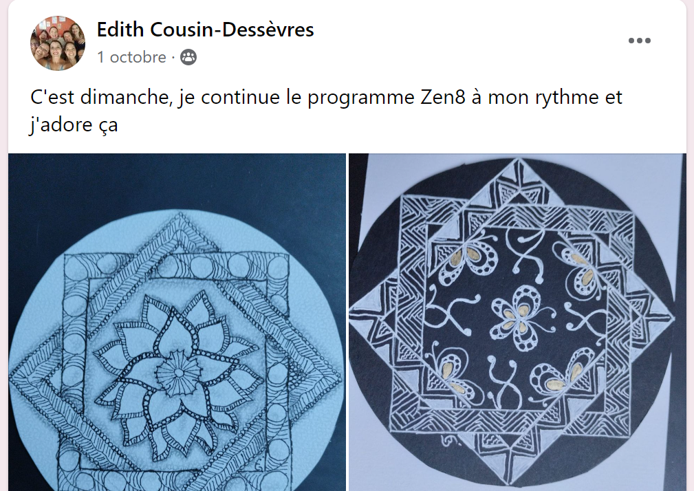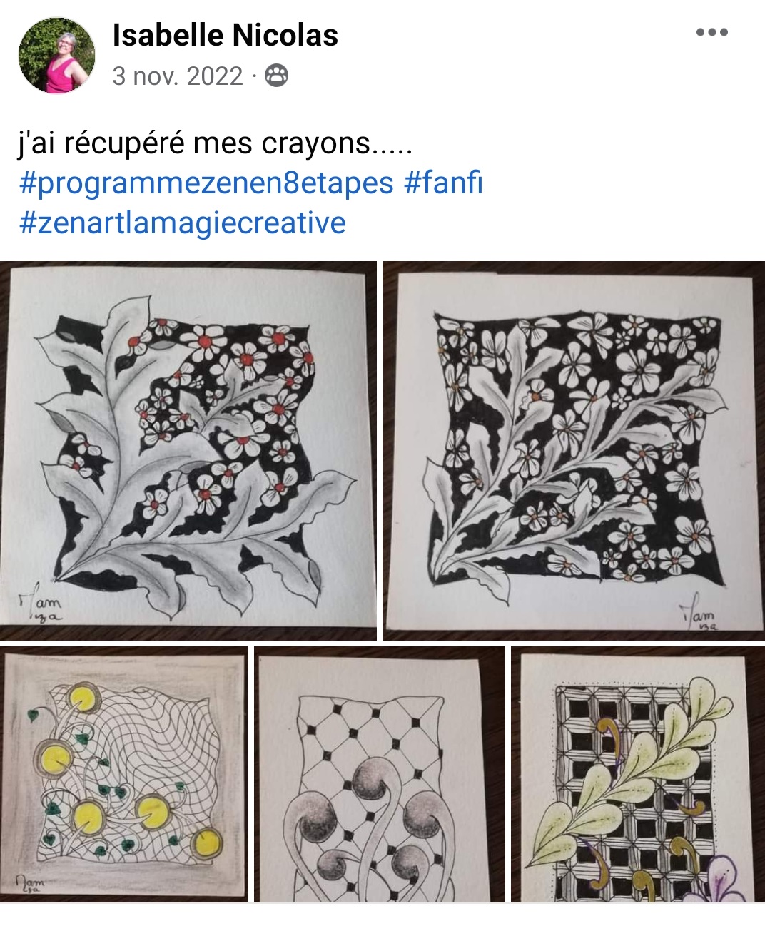 En suivant ce programme, tu auras toutes les informations utiles, dans le bon ordre, pour t'épanouir graphiquement et psychologiquement avec la méthode Zentangle.